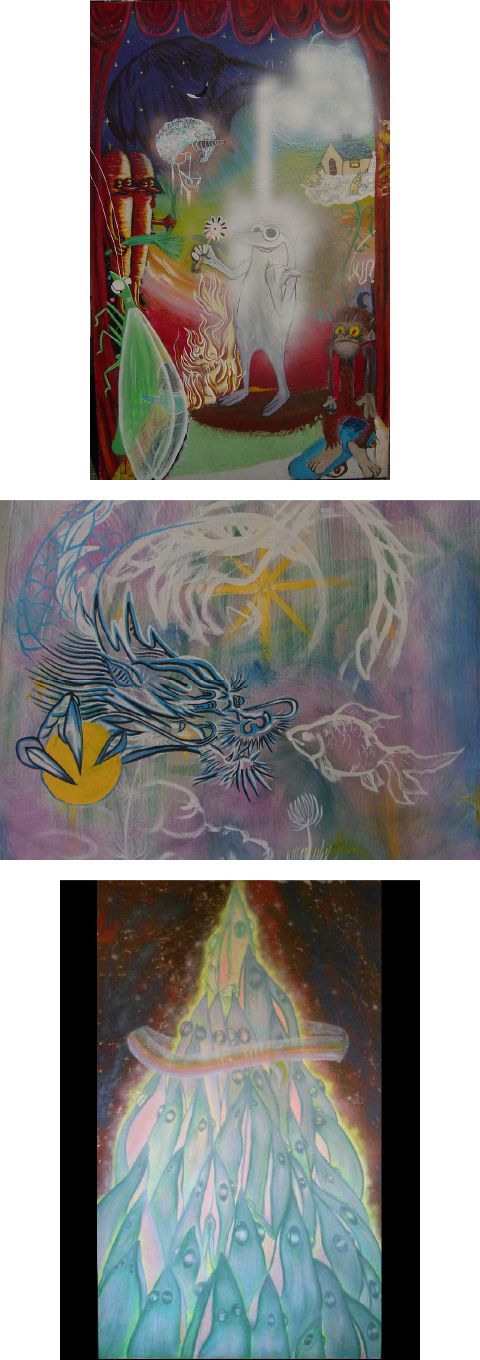 2001年、ジャムバンド”BIG FROG”のジャケットを手掛け、キャラクター”あげ”が生まれる。同年、B.Fのライブでアクションペイントを開始。その後、国内外問わず”あげ”と共に浮き世のパラレルワールドを旅している。宇宙的な冒険心と遊び心をたいせつにした独特の世界観をもち、自由、平和、そして愛を世に問いつつ絵を描きつづける、情熱のアーティスト。 by冒険Z