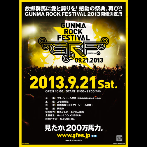 「故郷群馬に愛と誇りを!」をテーマに、県内最大規模のロックの祭典「GUNMA ROCK FESTIVAL 2013」が21日、前橋市のグリンドーム前橋で開かれた。県内外のアーティスト30組が出演し、観客を熱狂の渦に巻き込んだ。